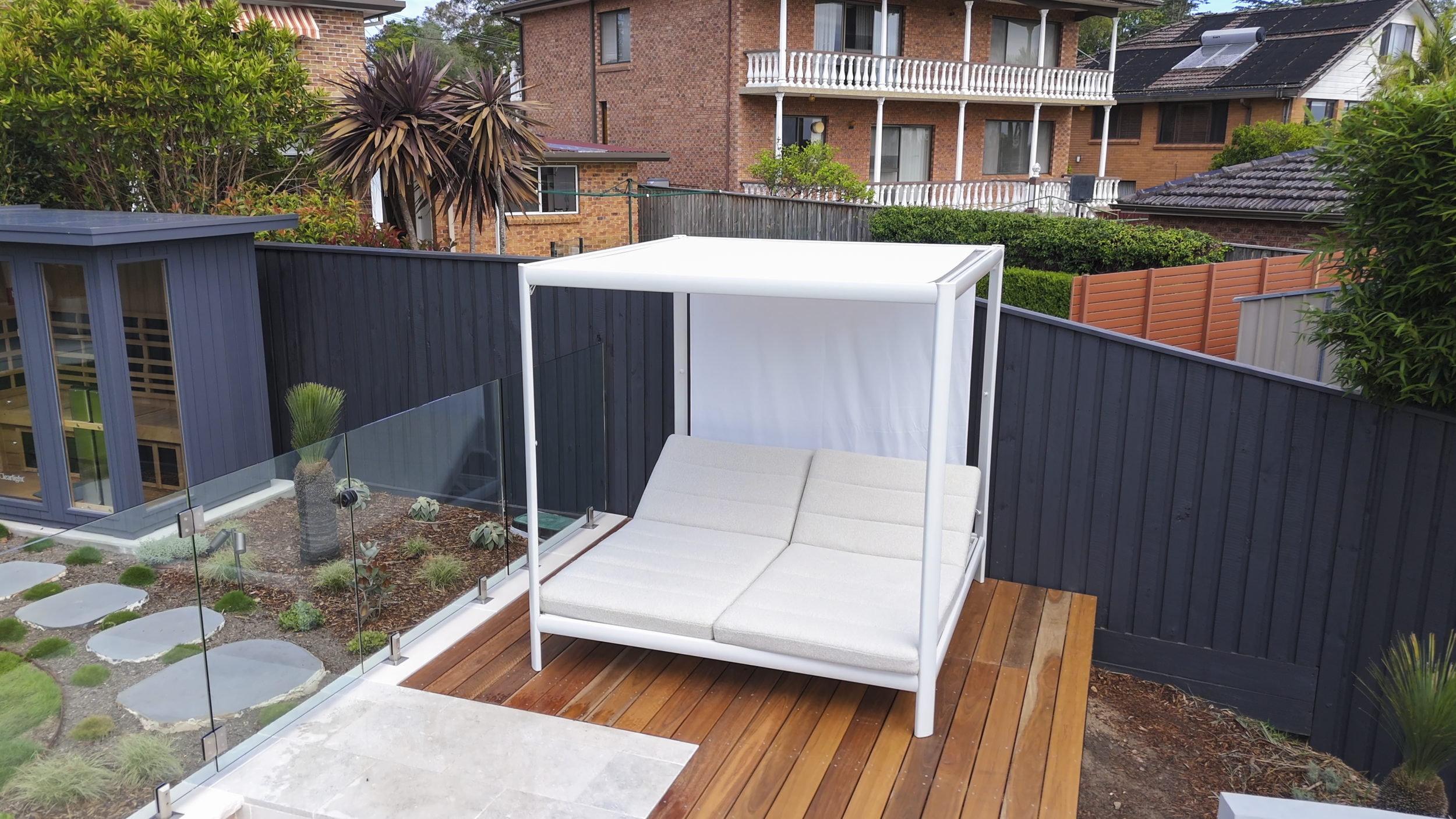Aerial coverage delivered for repeat client Prospect Landscapes at 53 Arthur Street, Forestville, documenting a complete outdoor renovation. The shoot captures the new infrared sauna, pool and spa, gazebo lounge setting, fresh planting and lawn from a combination of high bird’s-eye perspectives and tighter aerial details. Smooth orbits and movement shots were used to show how each element connects within the overall layout.